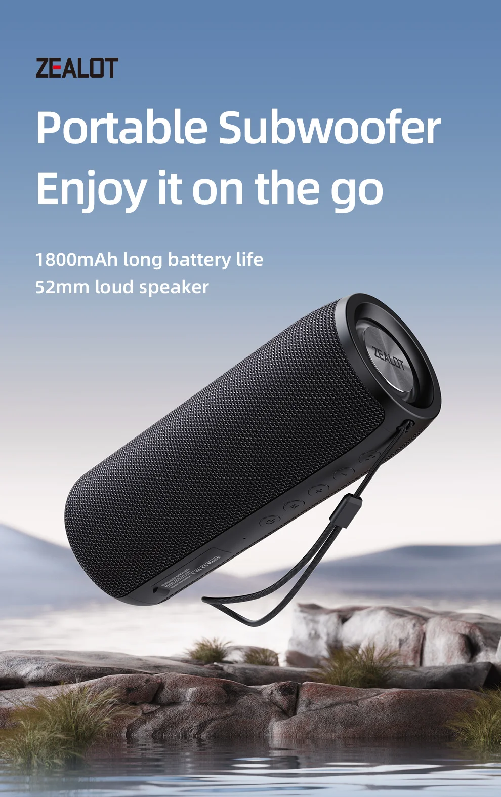 Zealot-Protable Bluetooth Speaker Enhanced Bass Portable Speaker with 12H Playtime, IPX5 Waterproof for Camping